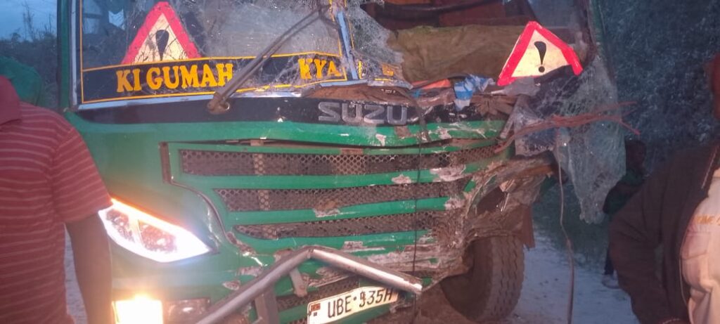The 6:40 pm Sunday crash involved a commuter taxi Registration Number UBQ154K, which was travelling from the Mityana side, heading to Mubende, before it rammed into a parked bus belonging to Link Bus Company registration Number UBE535H.