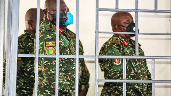 Brig Gen James Barigye Ruheesi, 60; Col David Ocitti Kidega, 52; Maj Innocent Kikongi Mugumya, 41 and Capt Kenneth Labwon Kinyera, 37, on Monday appeared before the General Court Martial in Makindye for plea taking.