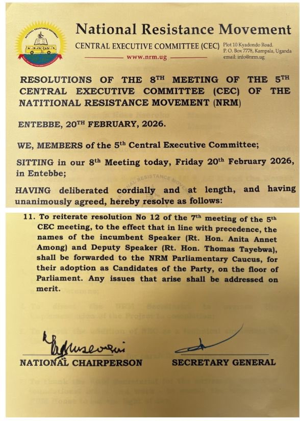 This comes after the President, 81 who has ruled Uganda for nearly a half a century and still counting , ratified the Central Executive Committee (CEC) resolutions dated January 27 and 20th February 2026.